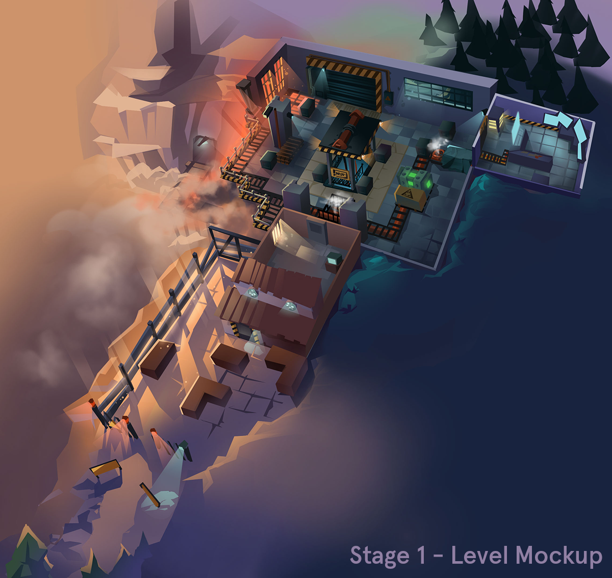 For the prototype level of Gente Troll's entertainment project Underdown, I created the low poly level art and characters, placed the in Unity and adjusted lighting and vfx.