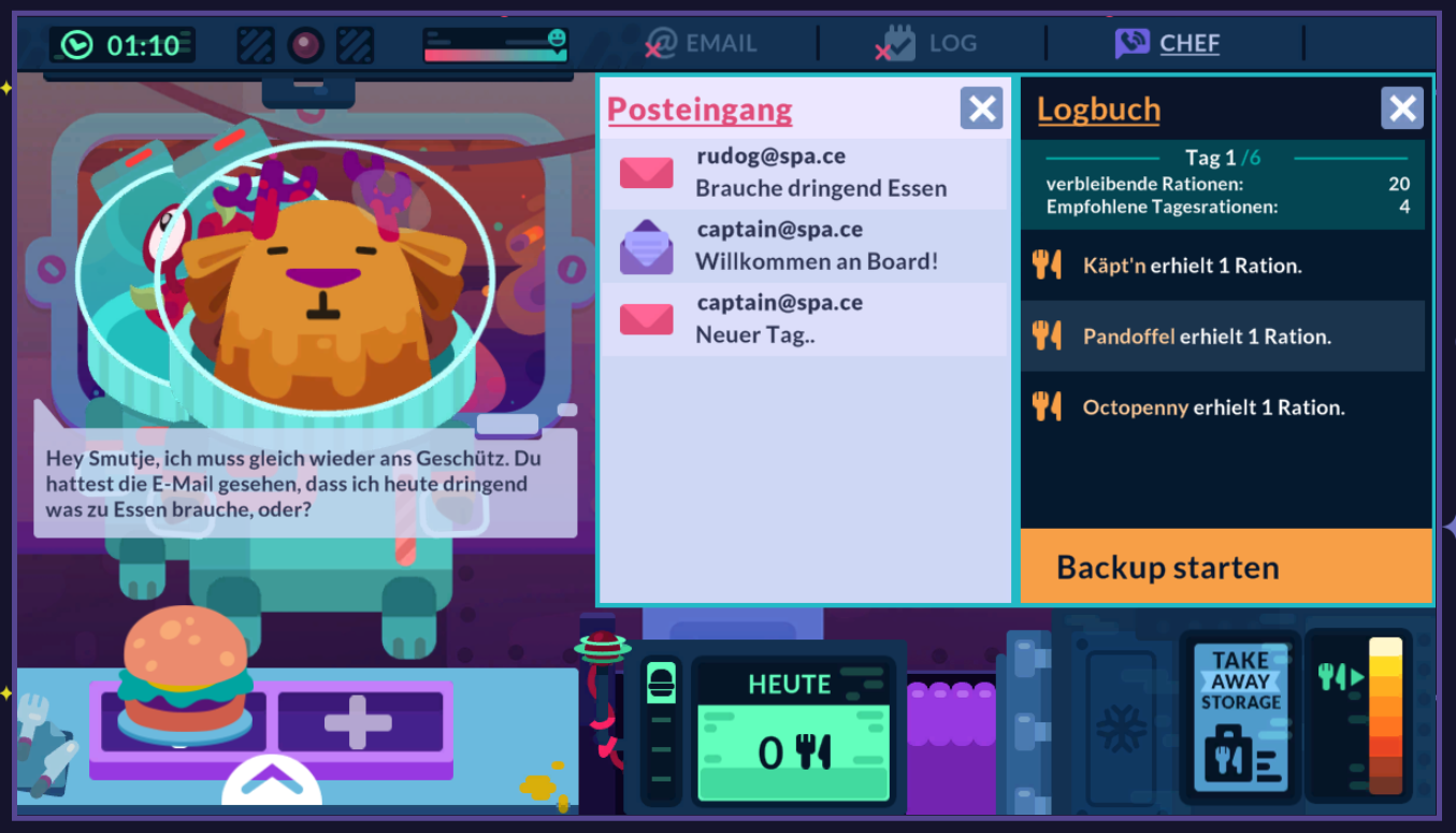 In this web based app, the player gets to fend of hungry hordes of their crew mates who constantly try to cheat and steal their way into the pantry.